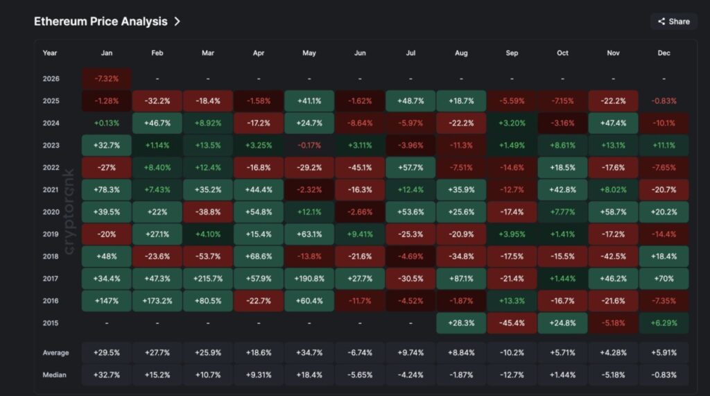 Dengan demikian, Ethereum kembali memasuki Februari di titik persimpangan penting. Namun, tidak semua analis menganggap pola musiman sebagai panduan yang dapat diandalkan.