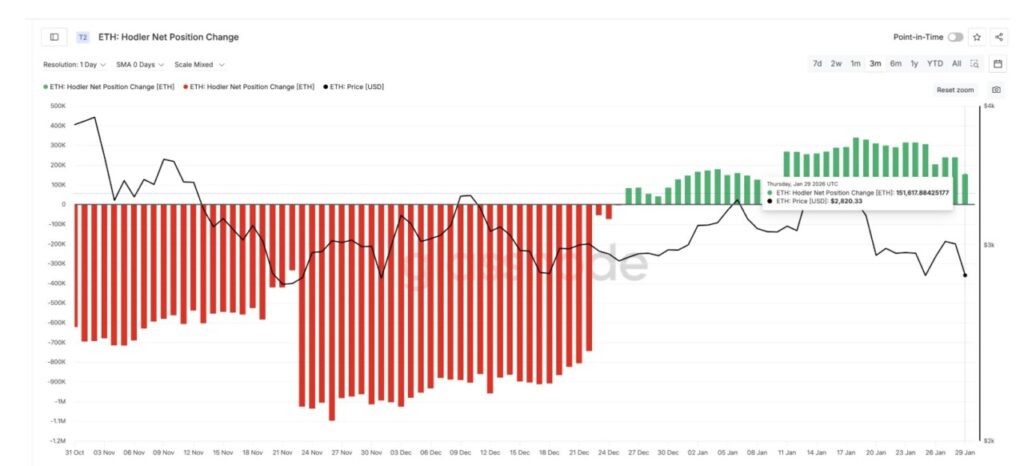 • 29 Januari: Turun menjadi sekitar 151.600 ETH, penurunan lebih dari 55%