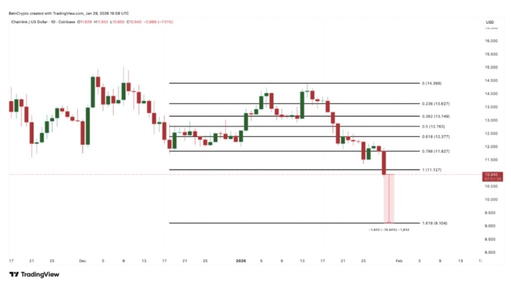 Namun, dari sisi harga, tren saat ini masih bearish. LINK telah turun sekitar 7,2% dalam sebulan terakhir dan sekitar 3% pada 24 jam. Yang lebih signifikan, LINK kehilangan level support penting di sekitar $11,12.