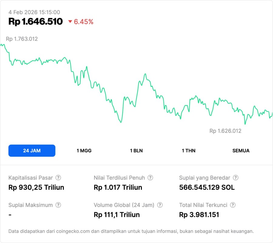 Jakarta, Pintu News – Solana , salah satu altcoin terbesar dalam ekosistem cryptocurrency, kembali menjadi sorotan setelah harga aset ini mundur menuju zona permintaan penting. Zona ini dianggap sebagai wilayah teknikal yang dapat menentukan apakah tren kuat SOL berlanjut atau falter. Dalam kondisi pasar yang masih rentan, pergerakan harga di area ini memberikan sinyal penting yang relevan bagi investor dan pemula.