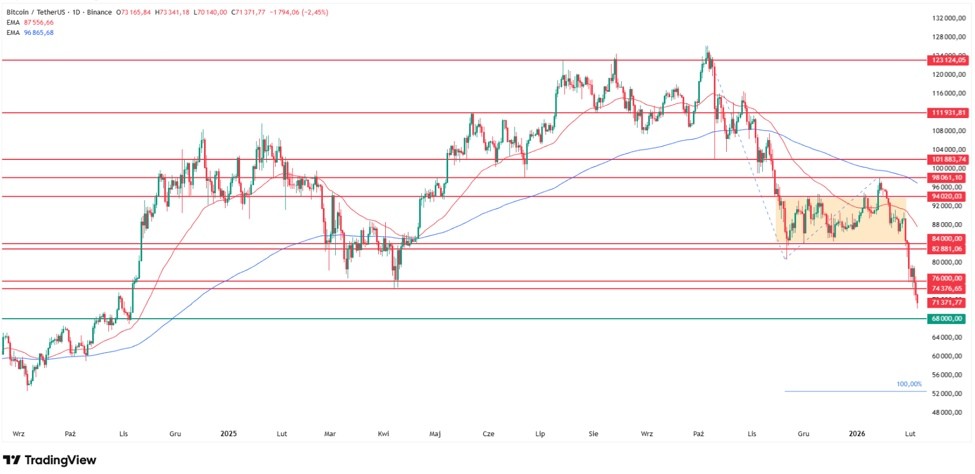 Beberapa sesi terakhir menunjukkan bahwa harga sebagian besar aset crypto turun berturut-turut. Bitcoin sempat mendekati area US$70.000, sementara XRP dan DOGE bahkan kehilangan level dukungan penting mereka. Penurunan ini mencerminkan tekanan jual jangka pendek yang kuat dan kurangnya pembeli agresif pada level harga saat ini. Hal tersebut mempercepat momentum turun dan mendorong sentimen bearish di pasar.