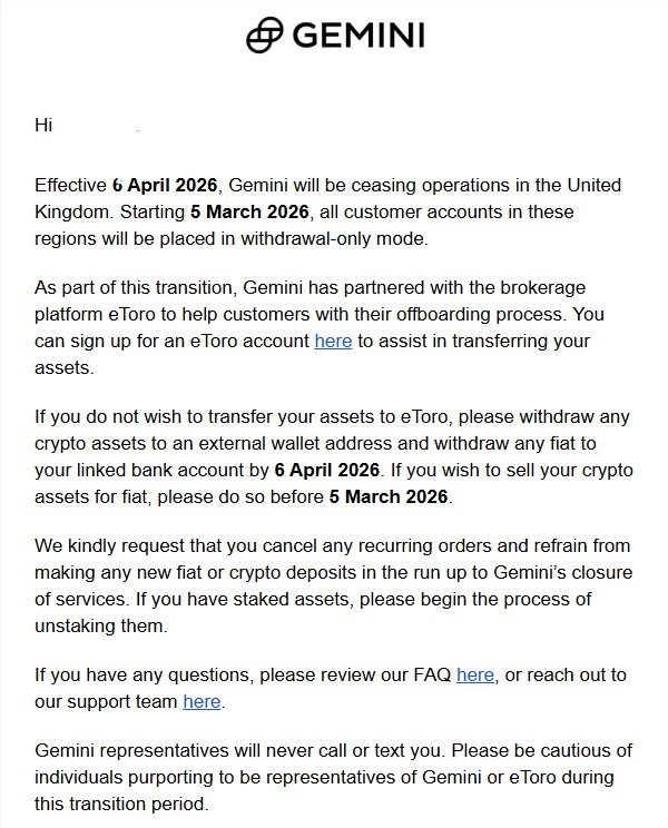 Penghentian operasi di pasar Eropa dan Australia berarti pengguna di wilayah tersebut tidak lagi dapat membuka akun baru dan akan masuk ke mode hanya penarikan. Hal ini berdampak langsung pada pengguna crypto di wilayah tersebut karena mereka harus memindahkan aset mereka dari platform Gemini sebelum penutupan penuh layanan berlangsung.