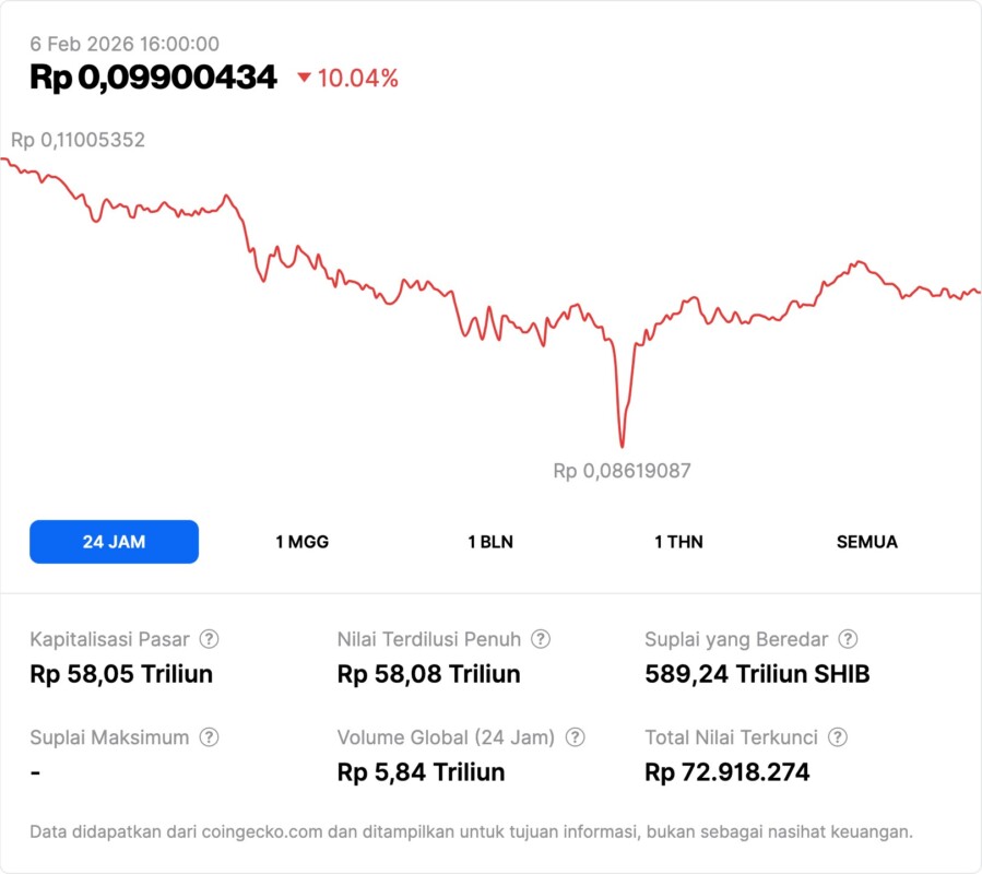 Meski SHIB masih berada di tekanan jual yang cukup besar, beberapa pola teknikal menunjukkan potensi dasar pembentukan tren rebound jangka pendek. Buyer secara bertahap memasuki pasar setelah periode koreksi panjang. Namun, kekuatan pembalikan belum cukup untuk mematahkan resistance jangka pendek.