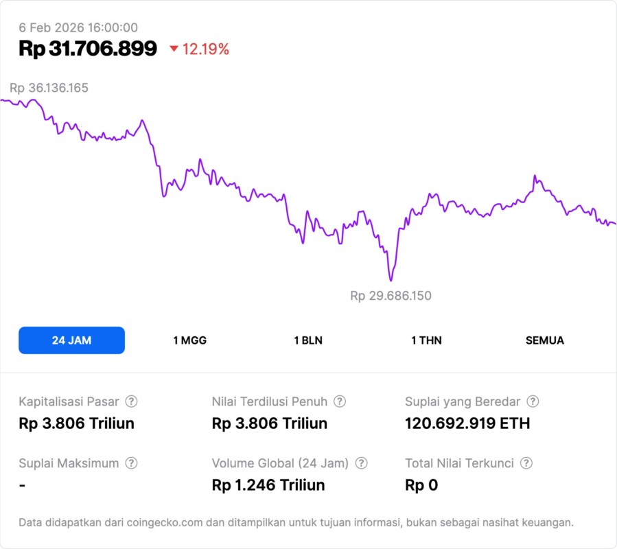 Ethereum saat ini berada dalam kondisi oversold di indikator RSI harian, mencapai level teknikal terendah dalam sekitar 300 hari terakhir. Signal ini secara umum menunjukkan bahwa tekanan jual jangka pendek mungkin sudah mendekati puncaknya. Dalam sejarah pasar, kondisi oversold sering kali berakhir dengan rebound teknikal atau fase konsolidasi.