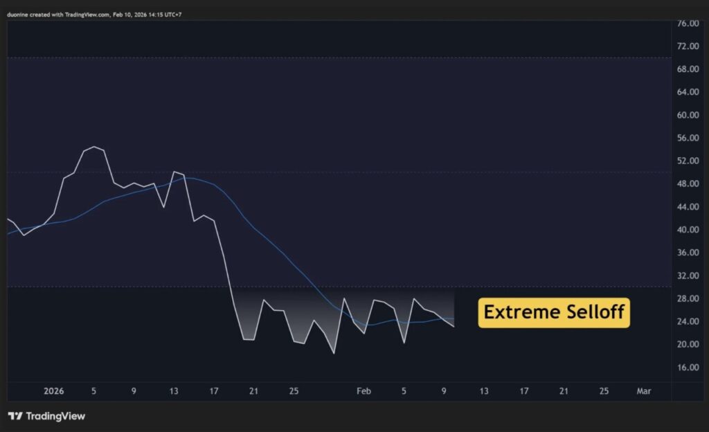 Sejak 20 Januari, indikator RSI pada time frame harian terus berada di area oversold (di bawah level 30). Yang lebih mengkhawatirkan, RSI bertahan lama di zona ini tanpa ada tanda pemulihan berarti. Hal ini menunjukkan tekanan jual yang sangat kuat dan berkelanjutan, sehingga harga tidak diberi ruang untuk pulih.