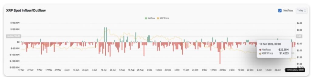 Karena itu, para trader masih lebih memperhatikan perilaku harga di area support daripada potensi kenaikan. Data pasar menunjukkan bahwa XRP kini diperdagangkan dalam kondisi yang sarat kehati-hatian, dipengaruhi oleh batasan teknikal dan permintaan yang tertahan.