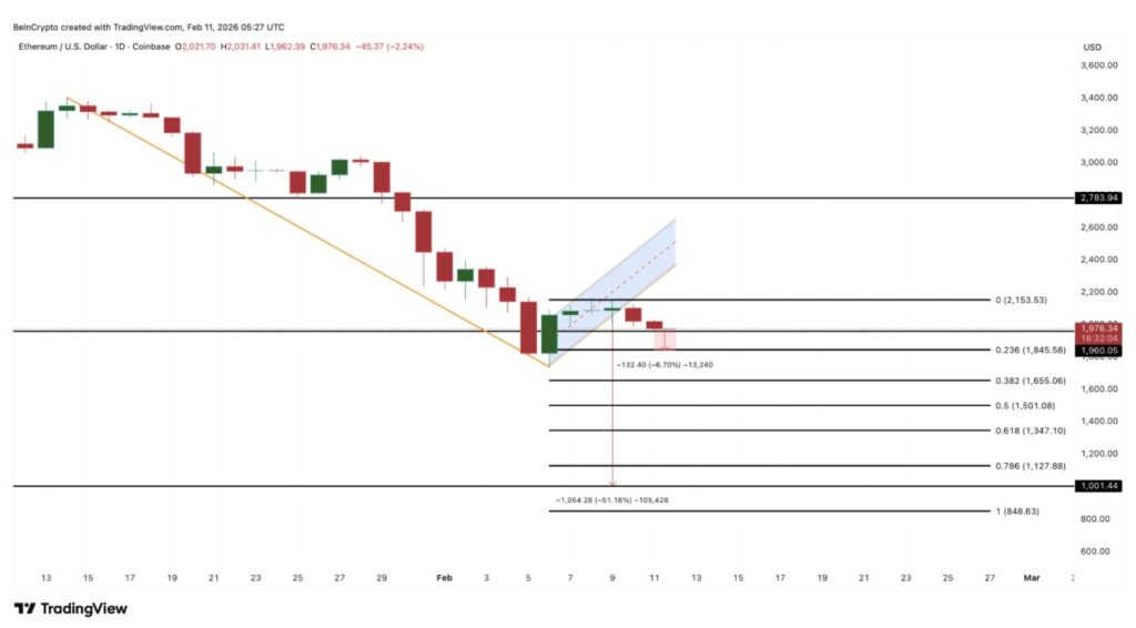 Jakarta, Pintu News – Harga Ethereum turun lebih dari 5% dalam beberapa hari terakhir dan sekarang telah menembus ke bawah salah satu level struktur jangka pendek yang penting. Pada 10 Februari, ETH jatuh di bawah $1.980 setelah gagal mempertahankan pergerakan rebound di dalam kanal sempit.