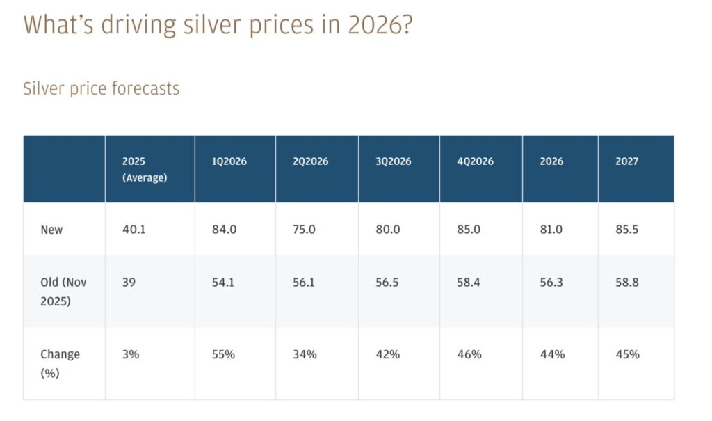 J.P. Morgan Global Research memperkirakan bahwa harga perak akan rata-rata sekitar USD81 per ounce pada 2026, lebih dari dua kali lipat rata-rata tahun sebelumnya. Proyeksi ini mengikuti kenaikan signifikan sepanjang 2025, di mana harga perak naik lebih dari 130 persen dari sekitar USD29 per ounce menjadi wilayah harga yang jauh lebih tinggi. Kondisi ini mencerminkan fundamental permintaan yang kuat serta peran perak dalam sektor industri dan sebagai komoditas safe-haven saat volatilitas pasar meningkat.