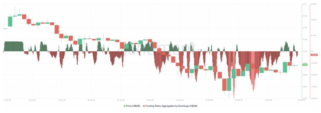 Sepanjang tren turun terakhir, funding rate HBAR didominasi angka negatif, disertai lonjakan merah yang dalam saat harga merosot dari kisaran $0,12 ke sekitar $0,095. Hal ini menunjukkan agresivitas posisi short yang konsisten, di mana trader rela membayar untuk mempertahankan eksposur bearish ketika harga melemah.