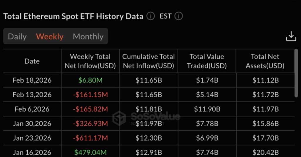 Jakarta, Pintu News – Ethereum akhirnya memutus tren negatif arus keluar ETF selama empat pekan berturut-turut. Pada pekan yang berakhir 18 Februari, tercatat adanya inflow yang menandakan kembalinya permintaan institusional.