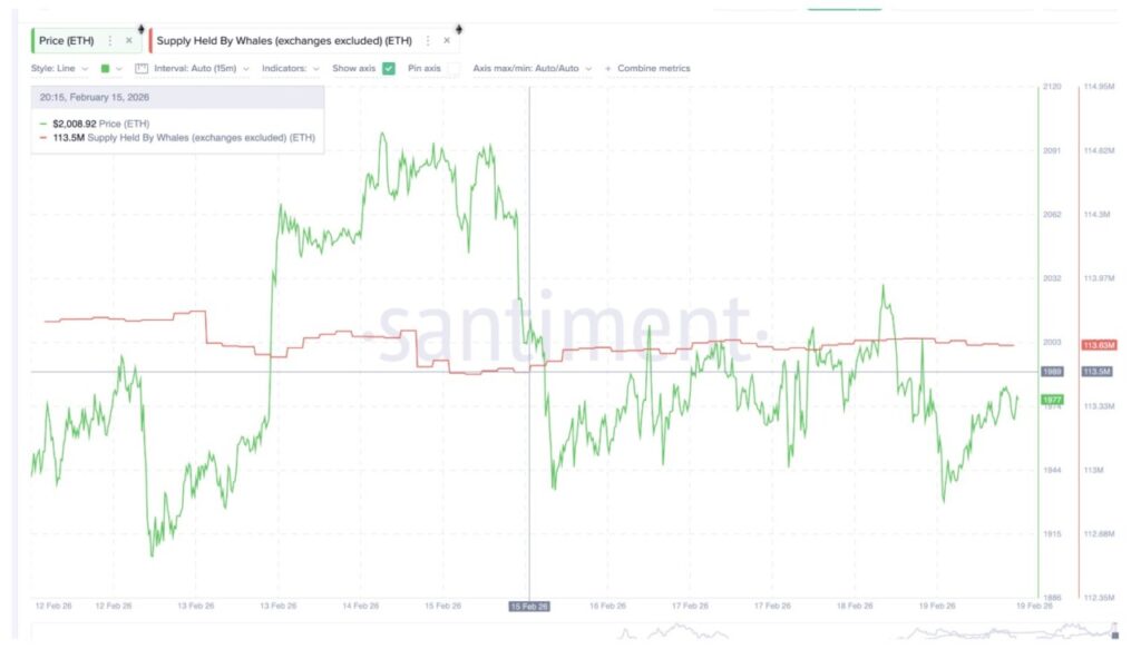 Di saat yang sama, aktivitas akumulasi oleh para whale (investor besar) kini telah kembali. Data menunjukkan bahwa dompet-dompet dengan saldo jumbo telah meningkatkan kepemilikan mereka dari 113,50 juta ETH pada 15 Februari menjadi 113,63 juta ETH saat ini. Peningkatan sebesar 130.000 ETH ini, jika dikonversi dengan harga pasar sekarang, setara dengan akumulasi senilai kurang lebih $253 juta hanya dalam waktu beberapa hari.