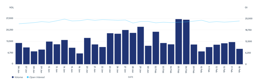 Rata-rata volume harian (ADV) untuk kontrak kripto tahun ini mencapai 407.200 kontrak, meningkat 46% dibandingkan tahun sebelumnya. Selain itu, rata-rata open interest harian juga naik 7% menjadi 335.400 kontrak, sementara ADV untuk kontrak berjangka melonjak 47% menjadi 403.900 kontrak.