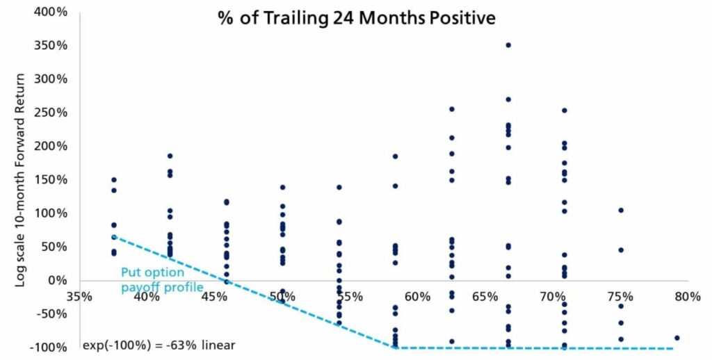 Meskipun sentimen pasar saat ini sangat negatif, data historis menunjukkan bahwa tekanan seperti ini tidak selalu berlangsung lama. Ekonom Timothy Peterson mengungkapkan melalui platform X bahwa sejak 2011, ketika setidaknya separuh dari dua tahun terakhir mencatatkan performa positif, Bitcoin (BTC) cenderung naik dalam 10 bulan berikutnya sebanyak 88% dari waktu yang diamati. Rata-rata, kenaikan harga pada periode tersebut bisa mencapai 82%, memberikan harapan bagi investor jangka panjang.