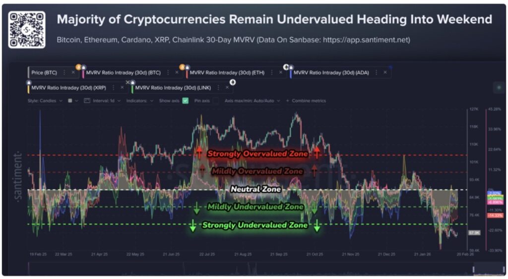 Jakarta, Pintu News – Aset crypto blue chip papan atas memasuki akhir pekan dengan menunjukkan sesuatu yang jarang diabaikan oleh para trader: angka MVRV 30 hari yang negatif. Ethereum berada di posisi -14,3%, sementara Bitcoin menyusul di angka -6,9%, dengan Chainlink (-5,1%), XRP (-4,1%), dan Cardano (-2,0%) membuntuti tepat di belakangnya.