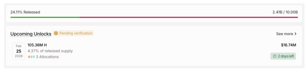 Pada tanggal 25 Februari, protokol ini akan membuka 105,36 juta token. Token-token tersebut bernilai $16,74 juta dan mencakup 4,37% dari pasokan yang telah beredar.