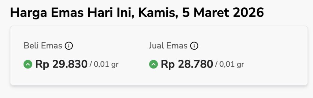 Baca juga: Harga Emas Semar Nusantara Hari Ini, Kamis 5 Maret 2026