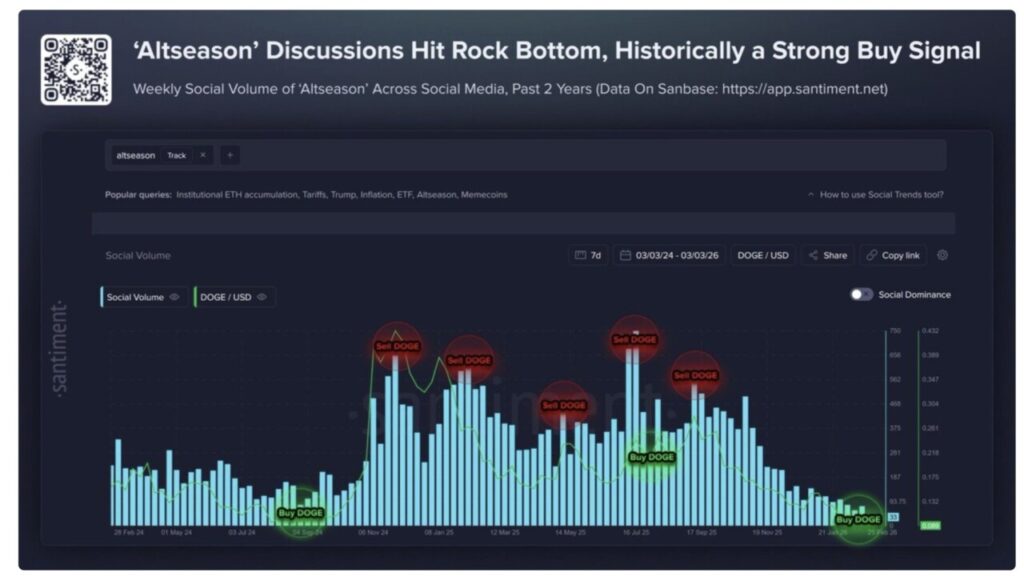 Secara historis, periode minimnya pembahasan mengenai altcoin sering bertepatan dengan fase dasar pasar. Ketika minat investor memudar dan sentimen menjadi senyap, kondisi tersebut kerap menandai fase akumulasi sebelum reli altcoin yang lebih luas dimulai.