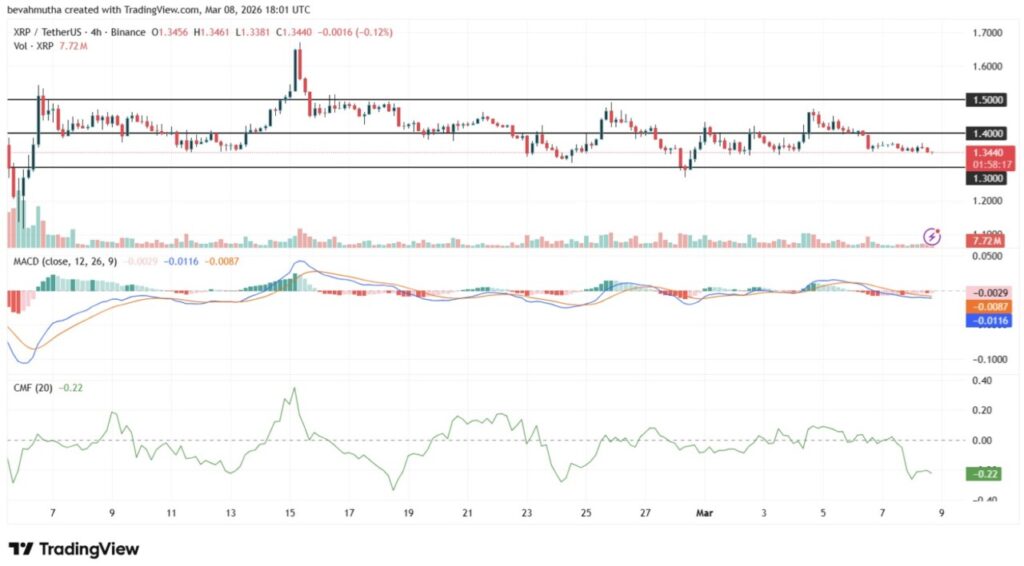 Jakarta, Pintu News – Harga XRP bertahan di $1.35 pada hari Minggu setelah gagal menguat menembus level resistensi $1.40, sehingga memperpanjang fase konsolidasi terbaru. Ripple sempat turun 1.02% pada 8 Maret 2026, yang mencerminkan kehati-hatian di pasar kripto secara umum. Kondisi ini memunculkan pertanyaan: apakah saat ini momentum yang tepat untuk membeli saat harga terkoreksi.