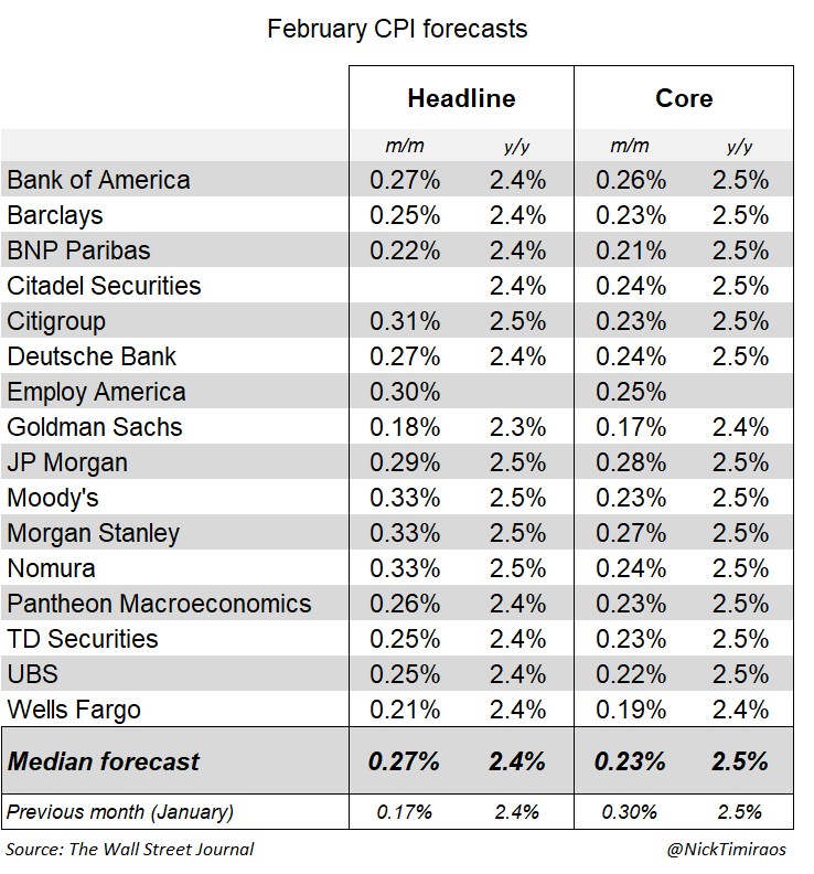 Data CPI Februari menunjukkan inflasi tahunan naik 2,4%, tetap sama seperti pada Januari, dan angka bulanan naik 0,3%, tepat sesuai perkiraan analis. Inflasi inti yang mengecualikan harga makanan dan energi naik 0,2% bulan ke bulan dan 2,5% secara tahunan, juga sesuai ekspektasi pasar. Kesesuaian angka ini menandakan pasar tidak menerima surprise yang signifikan dan menunjukkan tekanan inflasi masih moderat.