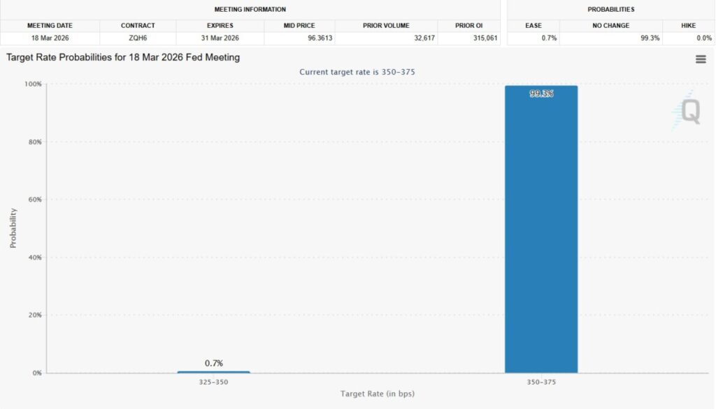 Karena CPI Februari tidak menunjukkan angka yang lebih tinggi atau lebih rendah dari proyeksi, ekspektasi pasar akan penurunan suku bunga (rate cut) oleh Federal Reserve semakin surut. Probabilitas pasar untuk rate cut pada pertemuan FOMC berikutnya turun tajam, yang berarti peluang monetary easing jangka pendek lebih kecil.
