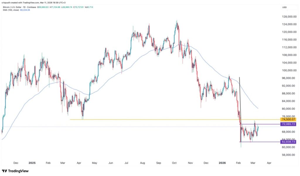 ⢠Coingape. Bitcoin Price At Risk of Losing $65k as Iran Warns of āContinuous Strikesā That May Push Oil to $200. Diakses tanggal 12 Maret 2026.