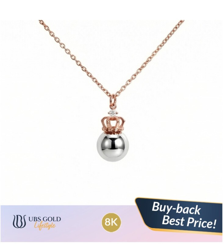Kalung emas dari UBS Gold Lifestyle ini hadir dengan desain yang unik dan elegan melalui kombinasi warna rose white gold yang memberikan tampilan kontras sekaligus modern. Dari segi spesifikasi, kalung ini memiliki kadar emas 8K dengan berat sekitar 2.18 gr, sehingga tetap terasa ringan namun terlihat cukup solid saat dikenakan.