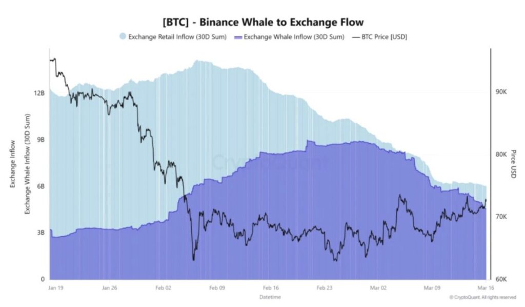 Salah satu sinyal utama datang dari arus dana ke bursa. Data menunjukkan bahwa aliran masuk Bitcoin ke bursaāterutama Binanceāturun tajam dalam beberapa pekan terakhir.