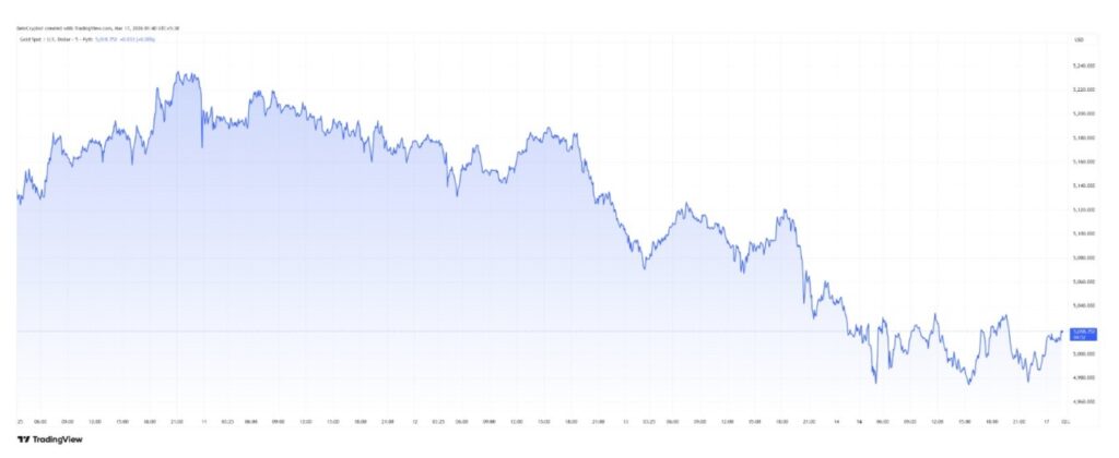 Pergerakan pasar dalam sepekan terakhir memberi petunjuk menarik lainnya. Harga emas tercatat turun tipis dalam periode yang sama, sementara Bitcoin naik sekitar 7%.