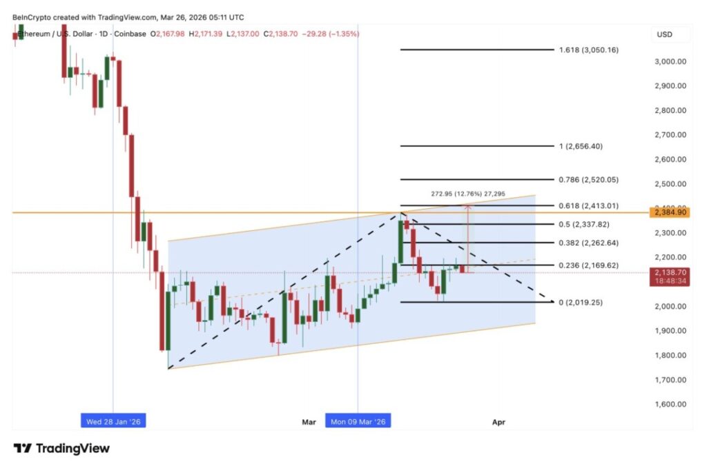 Ascending channel yang muncul setelah penurunan tajam sering kali lebih merefleksikan pola kelanjutan tren ketimbang pembalikan arah. Karena itu, ETH masih perlu menembus garis tren atas, atau setidaknya melewati swing high terpenting, untuk mengonfirmasi perubahan tren yang nyata.