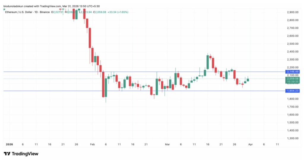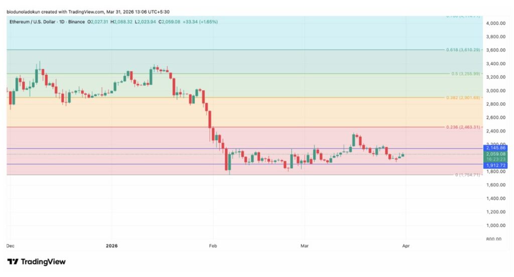 Dengan harga ETH yang masih kesulitan bertahan di atas $2.000 dan investor institusional yang mulai menjauh, aset ini berisiko mengalami tekanan lanjutan sepanjang April. Jika harga ditutup di bawah support $1.912, ETH berpotensi turun ke $1.754.