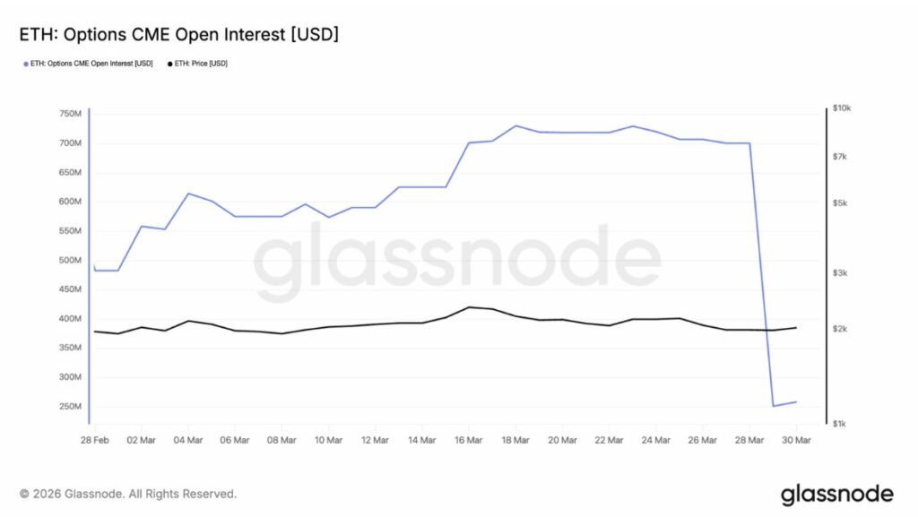 Selain itu, dalam beberapa hari terakhir juga terjadi penurunan signifikan pada open interest kontrak opsi ETH di Chicago Mercantile Exchange (CME).