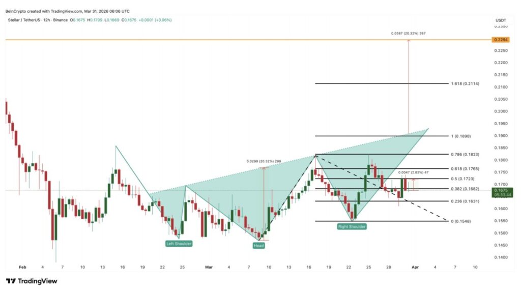 Pemulihan di atas $0,172 pada grafik 12 jam akan menjadi sinyal awal kekuatan bagi Stellar. Jika kemudian mampu menembus $0,176 dan $0,189, maka garis neckline yang menanjak berpotensi ditembus dan membuka jalan bagi target kenaikan berdasarkan proyeksi pola tersebut. Target breakout itu berada di sekitar $0,229, atau sekitar 20% lebih tinggi dari area neckline.