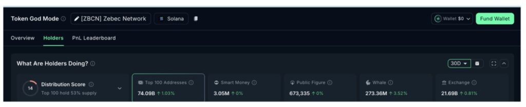Data whale crypto turut memperkuat sentimen positif tersebut. Dalam 30 hari terakhir, dompet whale meningkatkan kepemilikan ZBCN sebesar 3,52%, sehingga total suplai yang dikuasai whale mencapai 273,36 juta token. Akumulasi ini terjadi seiring kenaikan harga 14%, bukan berlawanan arah, sehingga mengindikasikan keyakinan pasar, bukan distribusi.