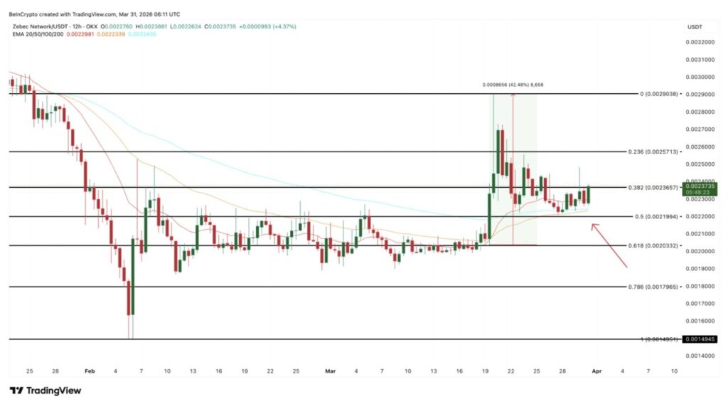 Pada grafik 12 jam, ZBCN telah berhasil kembali bergerak di atas EMA 20 periode, 50 periode, dan 100 periode. Yang lebih penting, EMA 50 periode kini semakin mendekati EMA 100 periode. Jika persilangan bullish ini terkonfirmasi, polanya akan menyerupai kondisi pada 19 Maret, ketika EMA 20 menembus ke atas EMA 50 dan memicu reli sebesar 42%.