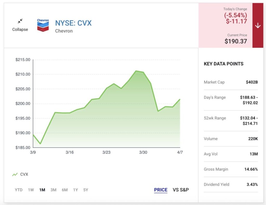 Chevron memiliki neraca keuangan yang solid serta rekam jejak panjang dalam meningkatkan dividen, sembari tetap mencari pertumbuhan di wilayah-wilayah potensial seperti Guyana. Perusahaan ini juga baru-baru ini mengakuisisi Hess Corp. untuk melengkapi dan memperkuat portofolio bisnisnya.
