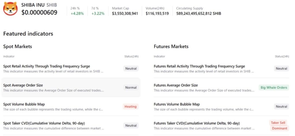 Data ringkasan dari CryptoQuant juga mengisyaratkan prospek bearish (menurun) ringan untuk SHIB. Grafik di bawah ini menunjukkan bahwa keberadaan pesanan dalam jumlah besar di pasar berjangka (futures markets) memberikan sedikit sinyal optimisme.