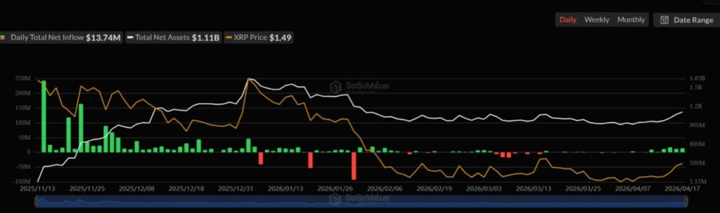 Namun, di tengah tekanan tersebut, aliran modal institusional ke dalam produk investasi berbasis XRP tetap menunjukkan angka yang cukup menjanjikan. Sentimen positif dari masuknya dana besar ini memberikan harapan bahwa aset ini memiliki pondasi yang kuat untuk jangka panjang. Berikut adalah data aliran dana masuk yang terjadi di pasar crypto: