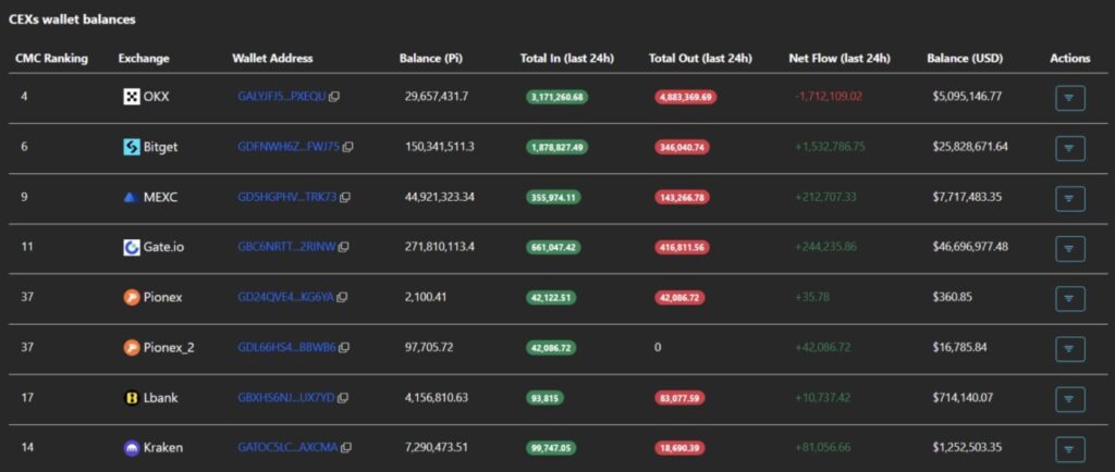 Saldo dompet bursa Pi Network mengalami aliran dana yang beragam (mixed flows) di berbagai platform terpusat (centralized platforms) utama dalam 24 jam terakhir. OKX mencatatkan arus keluar (outflow) yang signifikan di atas 1,7 juta PI, sementara Bitget mencatatkan arus masuk bersih (net inflows) yang signifikan di atas 1,5 juta PI.