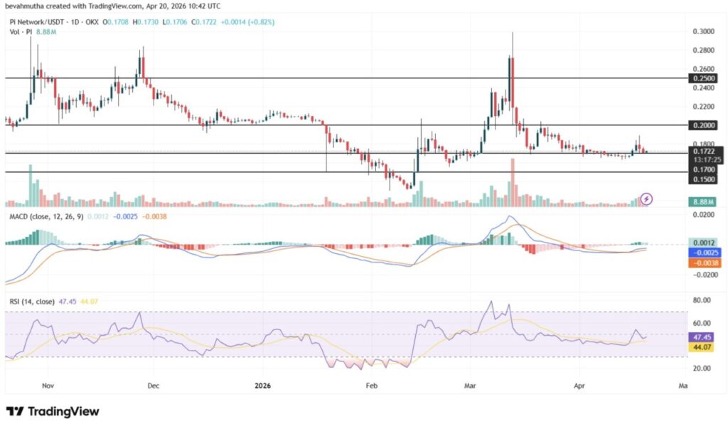 Pada saat pelaporan, harga koin PI melonjak tipis menjadi $0,1717 pada grafik harian terhadap USDT. Token tersebut mencatatkan keuntungan kecil lebih dari 0,50% pada sesi terakhir.
