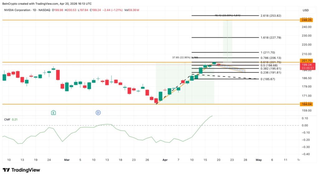 Secara teknis, NVIDIA membutuhkan penutupan harga harian di atas $201,75 untuk mengaktifkan proyeksi kenaikan sebesar 23%. Jika berhasil, target harga rata-rata yang dibidik adalah $250 atau setara dengan Rp4.285.250 per lembar saham. Indikator Chaikin Money Flow (CMF) yang menunjukkan angka 0,21 mengonfirmasi bahwa ada aliran modal institusional yang nyata masuk ke saham ini selama pembentukan pola bull flag.