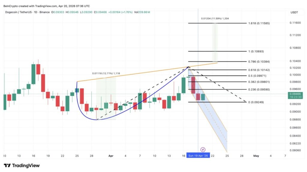 Jika menembus di atas $0,103, DOGE akan melewati level Fibonacci 0.786 di $0,103 dan neckline pada cup, yang berpotensi memicu pergerakan naik sekitar 12% menuju $0,115 pada level ekstensi 1.618. Sebaliknya, penurunan di bawah $0,092 akan melemahkan keseluruhan pola tersebut dan kembali membuka peluang penurunan menuju dasar cup.