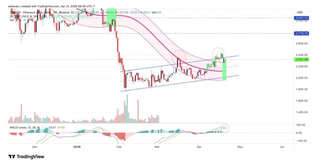 Jakarta, Pintu News – Harga Ethereum sempat diperdagangkan pada $2.307 per 21 April, sementara volumenya menurun hampir 19,5%, anjlok hingga di bawah $16 miliar. Token terbesar kedua ini menunjukkan beberapa tanda pemulihan, namun data yang mendasarinya mengisyaratkan kehati-hatian.