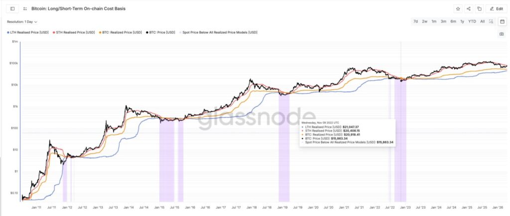 Secara historis sejak tahun 2015, siklus pasar bearish Bitcoin hanya berakhir setelah harga realisasi STH turun di bawah LTH, sebuah proses yang disebut kapitulasi akhir. Hingga April 2026, fenomena crossover ini belum terjadi, yang berarti pemegang jangka pendek masih memiliki ruang besar untuk menyerah dan menjual aset mereka. Jika sejarah berulang, pasar mungkin perlu melihat penurunan lebih lanjut untuk membersihkan spekulan jangka pendek sebelum memulai siklus baru yang sehat.