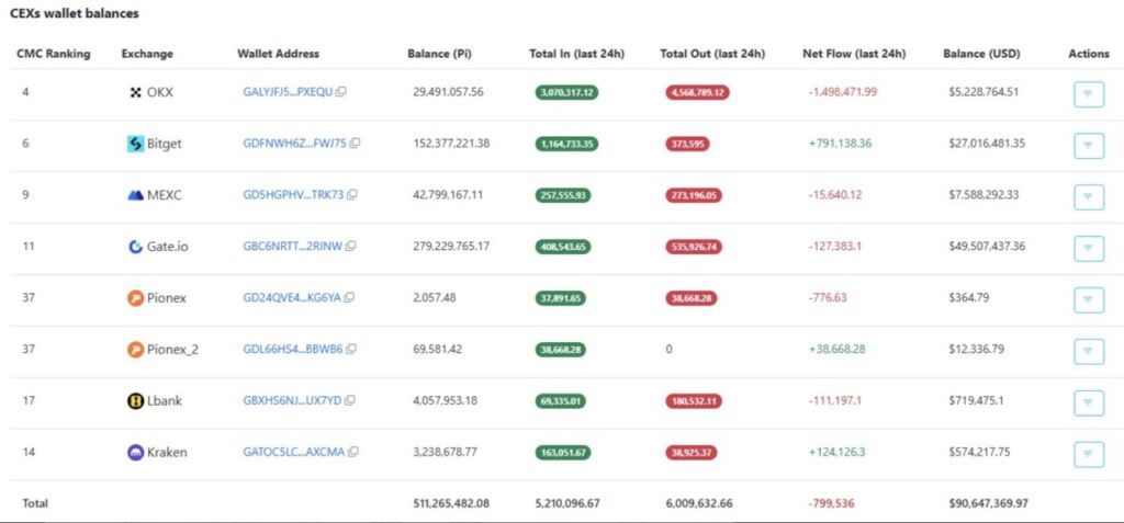 Akan tetapi, jumlah yang dikirim ke bursa ternyata tidak sebanyak yang ditarik keluar. Data dari PiScan menunjukkan bahwa dalam 24 jam, 5,2 juta PI dikirim ke bursa, sementara enam juta PI ditarik keluar. Ini berarti ada selisih 800.000 lebih banyak token PI yang ditarik.
